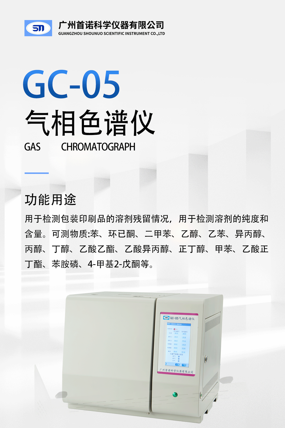 氣相色譜儀是用于檢測(cè)包裝印刷品的溶劑殘留情況和檢測(cè)溶劑的純度和含量,其基本原理是:氣體、液體或固體樣品通過一定的進(jìn)樣方式,經(jīng)過汽化室送入色譜(分離)柱系統(tǒng),樣品中的混合物組份在載氣(N2)的帶動(dòng)下流經(jīng)色譜柱,樣品中各組份在色譜柱中固定相的作用下獲得分離,被分離后的單一組份隨載氣進(jìn)入一種稱作檢測(cè)器的系統(tǒng),各組份在檢測(cè)器中獲得非電量的轉(zhuǎn)換,將化學(xué)組份轉(zhuǎn)變成與其濃度成比例的電信號(hào)(電流或電壓),將這些對(duì)應(yīng)各組份的電信號(hào)送入記錄儀表或數(shù)據(jù)采集處理系統(tǒng),就可對(duì)其混合物中各組份進(jìn)行定性定量分析。